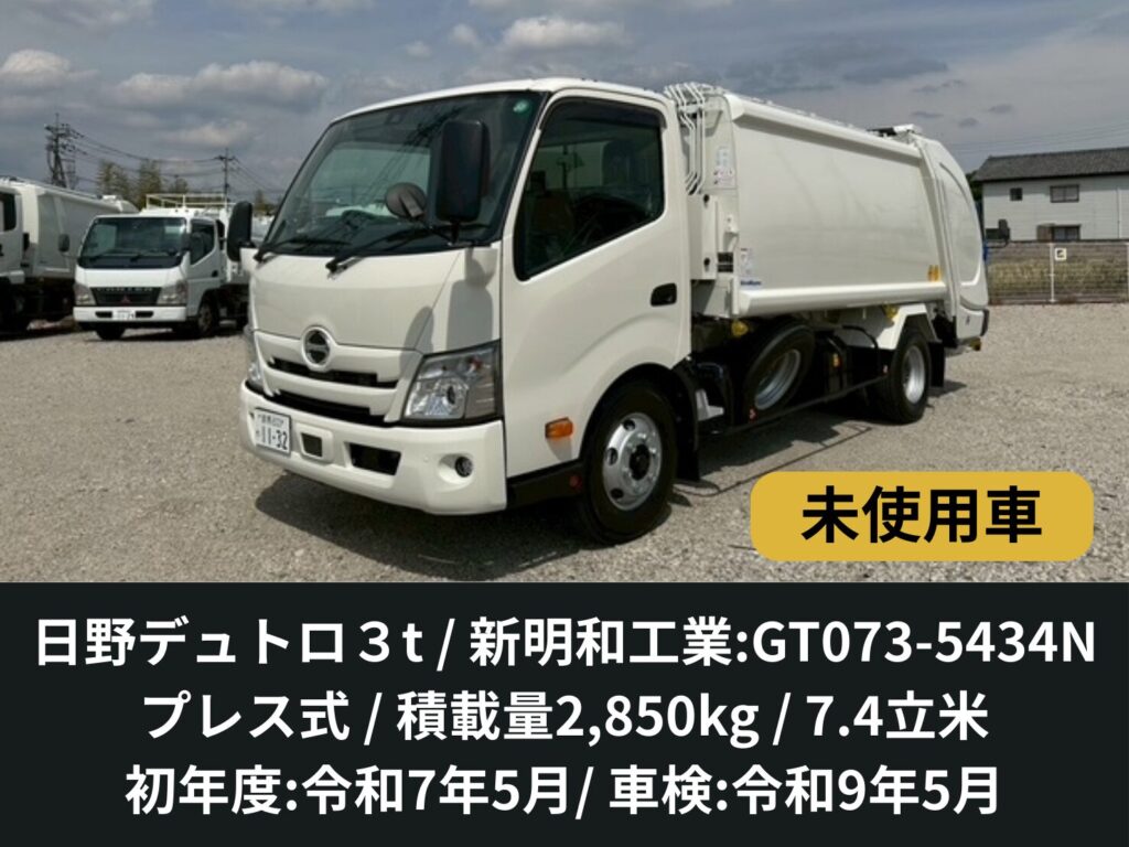 | 備考 | 新明和工業G-PXモデル・汚水タンク付き・プレス式・連続動作スイッチ・ルームミラー式バックモニター搭載・ETC車載器付き・6速マニュアル ・車検:令和9年5月 |