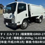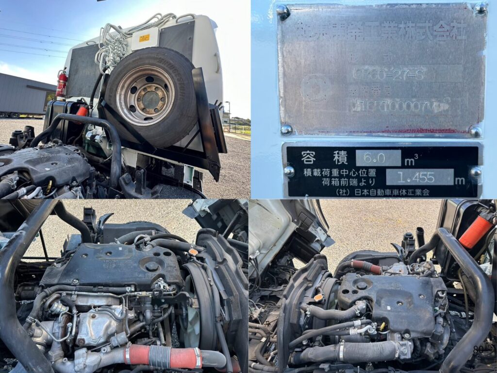 | 備考 | 極東開発GR60-27-S・汚水タンク付き・プレス式・連続動作スイッチ・バックモニター搭載・ETC車載器付・6速マニュアル ・スペアタイヤ付き・3ヶ月点検実施済み・架装物年次点検実施済み・車検:令和8年5月 *レンタカー使用の為、走行距離は増加する可能性があります。 |